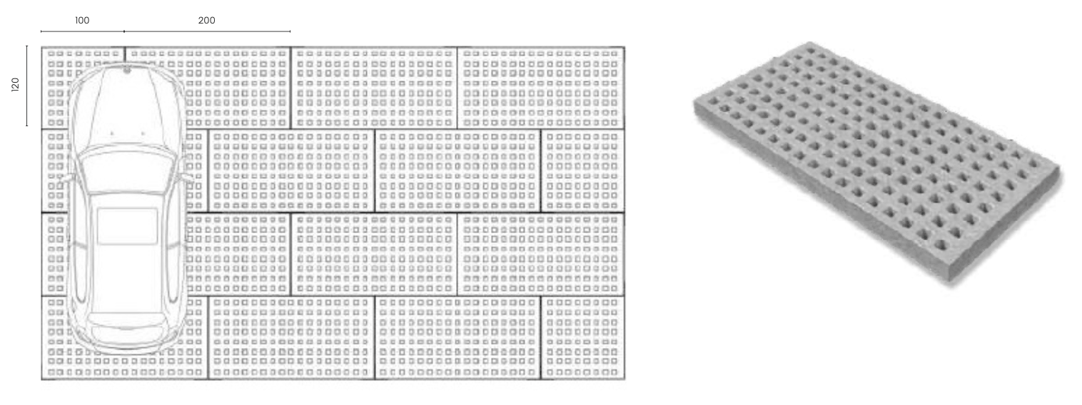 Dalles préfabriquées en béton armé pour des revêtements de sol perméables.