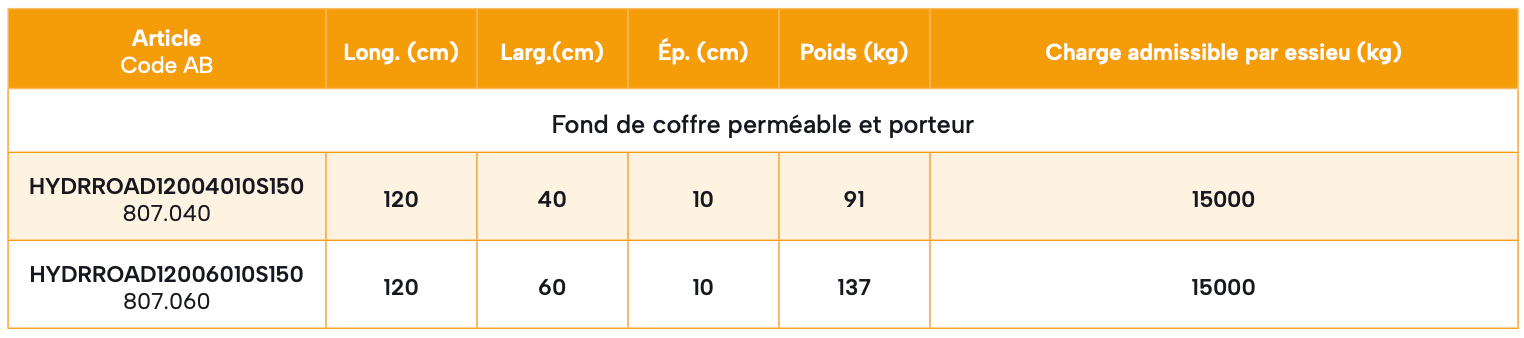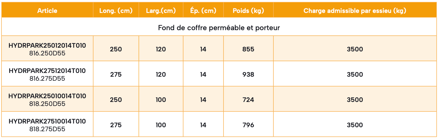 Dalles transversales HYDRO-PARK avec bordure d’arrêt